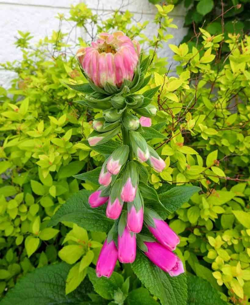 ジギタリス・プルプレア(パープレア)モンストローサです。2016年に発表されたばかりの新種の園芸品種ですね。てっぺんのお花だけ大きくてキキョウの花のような形に咲く珍種です。蕾のうちから面白い形をしてますね😃