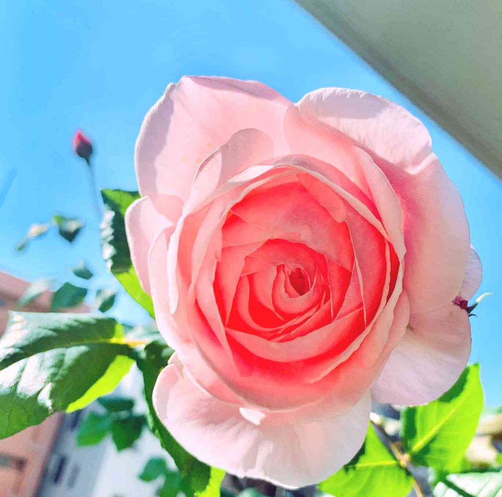 昨日、我が家のベランダは風が強く花が左右にブンブン揺られていたので心配しておりましたが、、、結局自身の棘に触れて左側の花びらが傷ついてしまった様子。