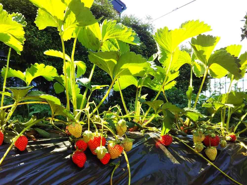 農家出身のスタッフが前年の株からランナーを取って苗にして植え付けてくれました。私は管理していませんが、彼女が言うには畝を高く作って植える事と、いちごが土に付かない様にマルチングする事がポイントだと言っていました。植え付け後はそのまま放置で何もしていません😁