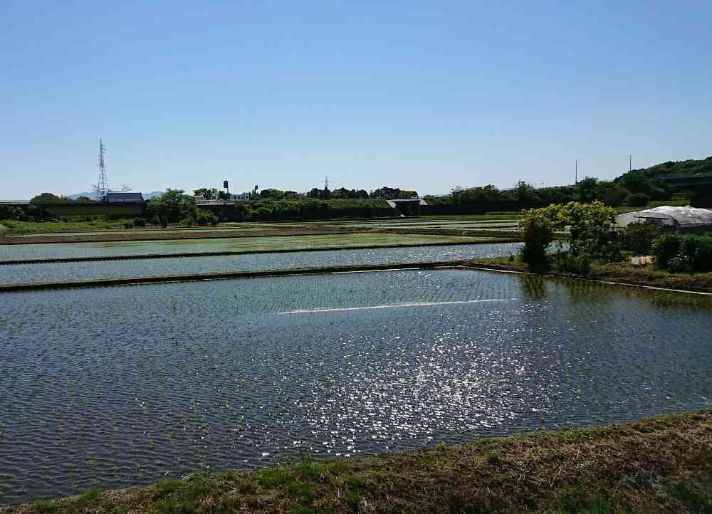 いいですね〜。初夏の水田が輝いています。日本の源風景。