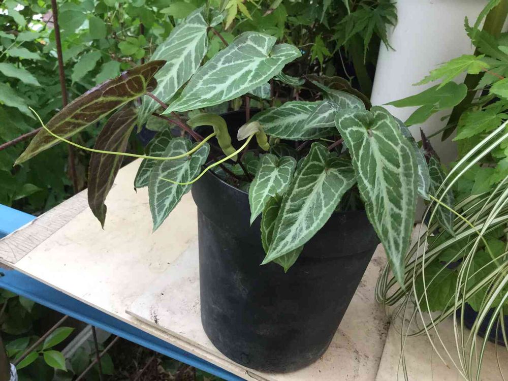 蛇のような花が咲いてます。甘い香りがする、ニオイハンゲ🤗だと思います。