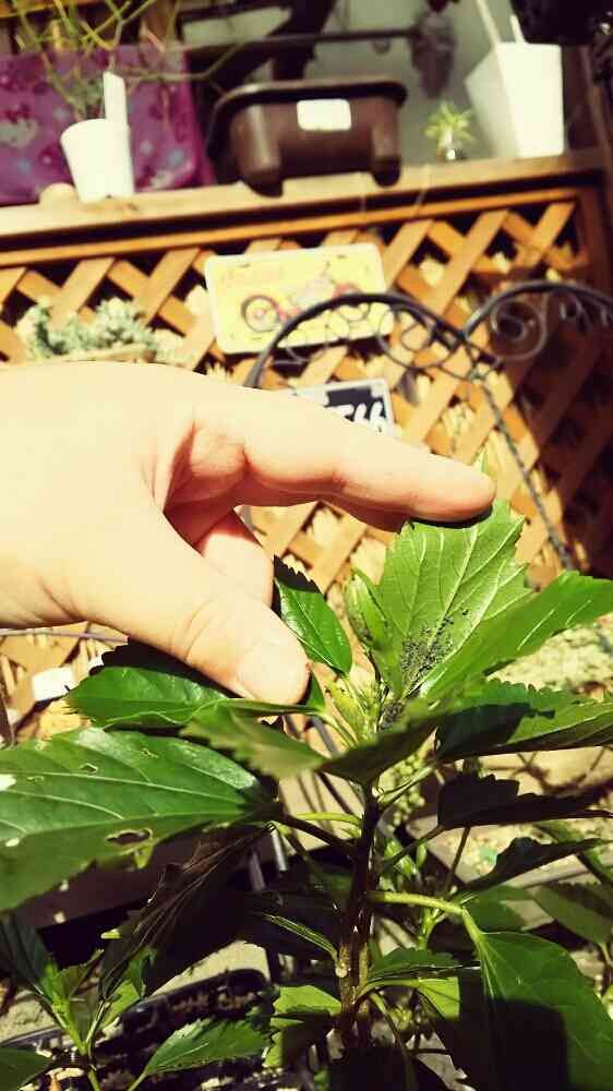 ハイビスカスも取り込もうと思ったけれど、ムシムシさんが……