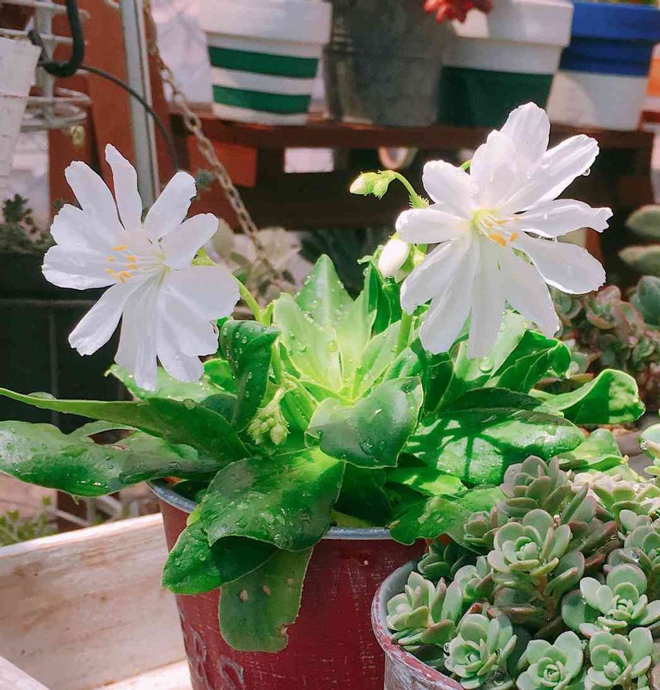 2シーズン目にやっと咲いてくれたレウィシアは、真っ白でした😊
