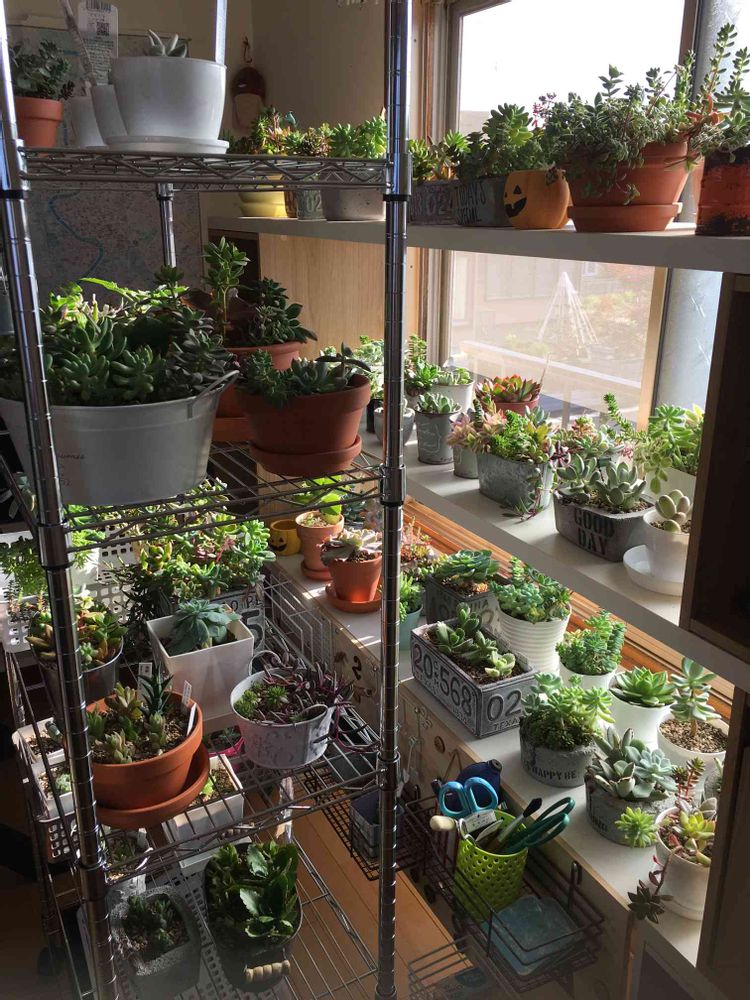 多肉愛、職場の先輩の影響♡ 多肉棚はパパさんのお手製٩(๑❛ᴗ❛๑)۶