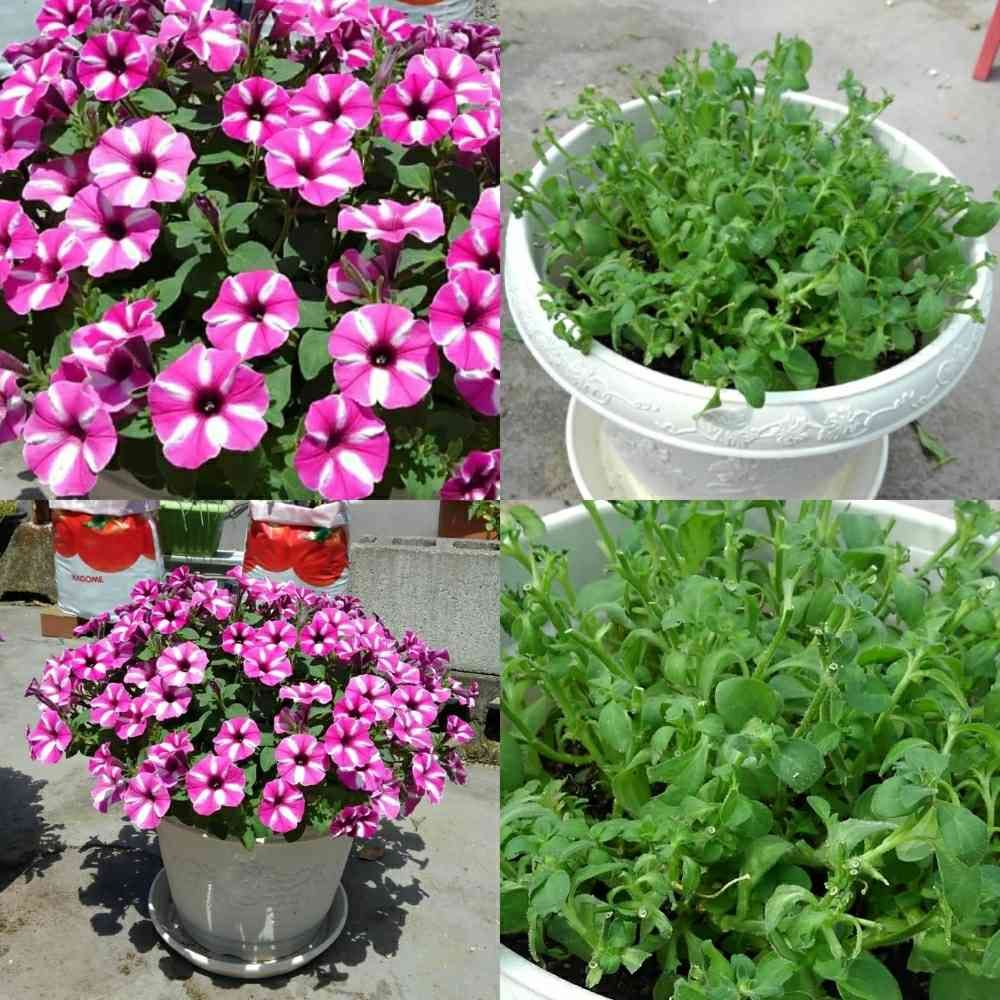 ペチュニア ラズベリージャムの満開のときの写真と、昨日切り戻した写真です。