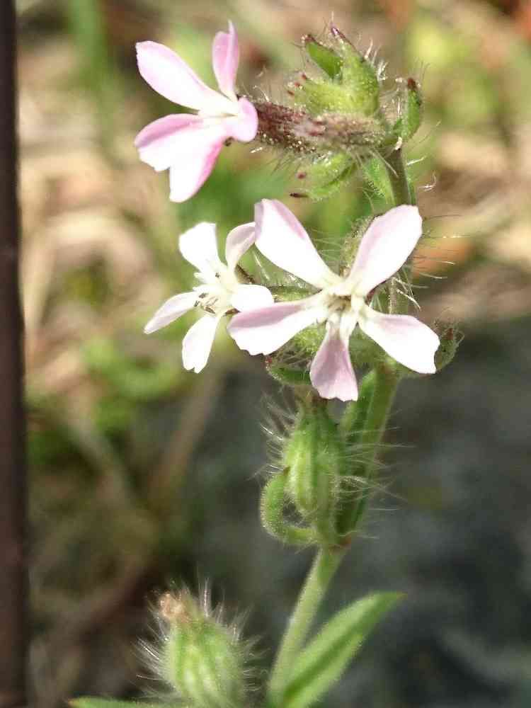 ナデシコ科マンテマ属の多年草江戸時代に鑑賞用に欧州から入って野草化したもの。葉や茎に腺毛がたくさん生えていて触ると粘っけがあります。