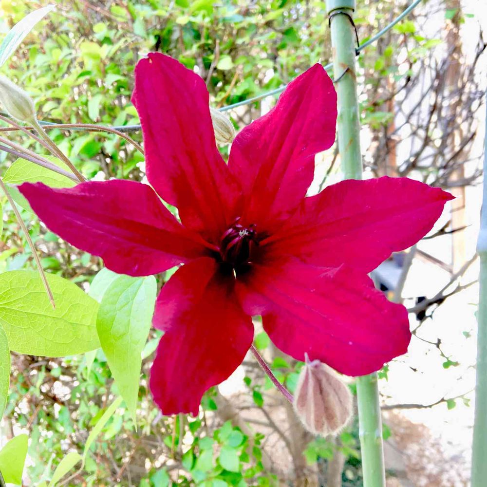 このクレマチスだけは此方を向いて、咲いてくれるので、窓越しに花の顔が毎日見られます(╹◡╹)