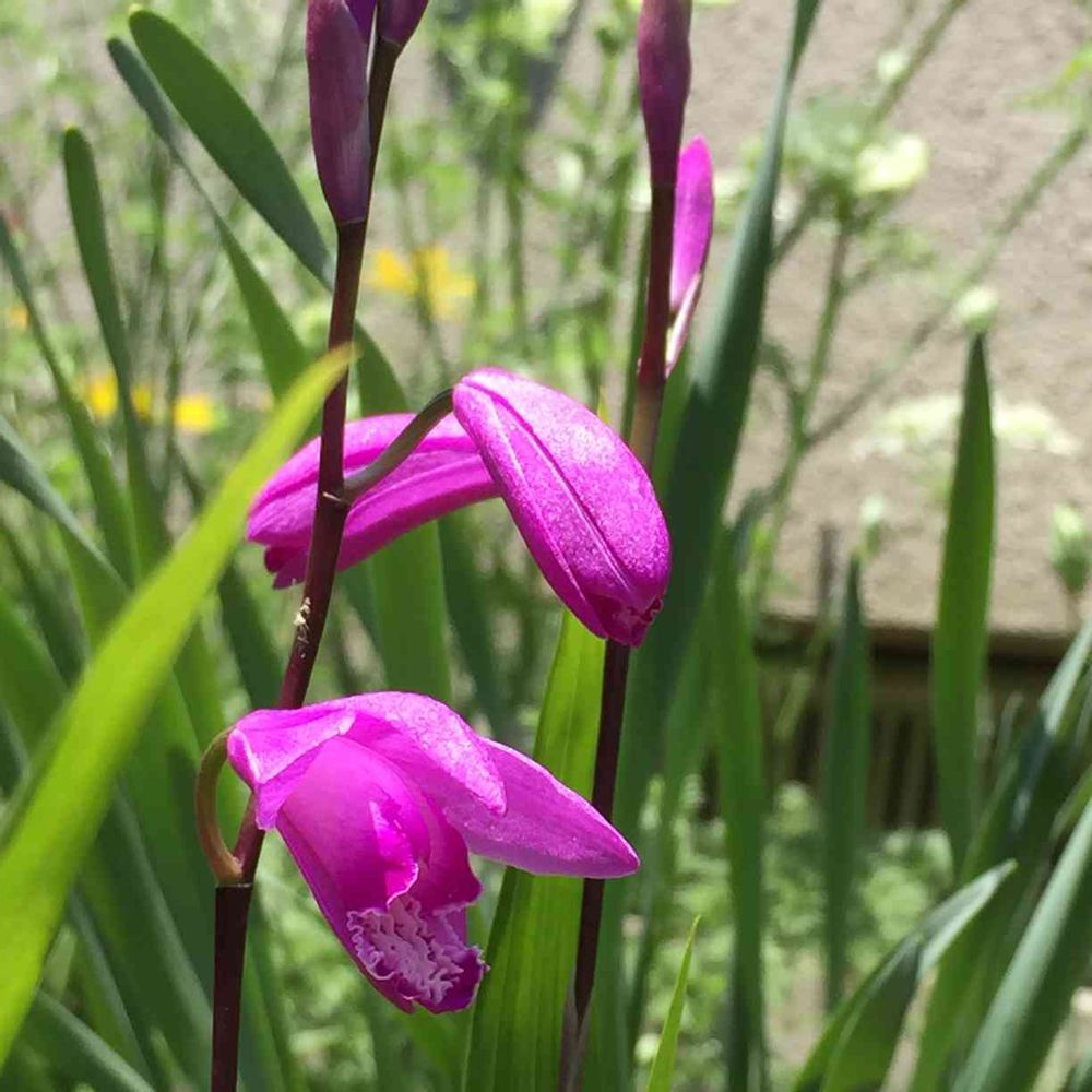シランが数日前から咲き始めました。これも空き地で雑草化していたのを一昨年貰って地植えしたもの。去年は咲かなかったので、嬉しい😊