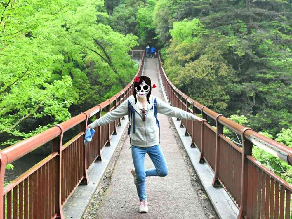 川のせせらぎと、鳥のさえずりをを聴きながら、緑鮮やかな秋川渓谷の吊り橋で令和の「令」をしてみましたヽ(^。^)丿