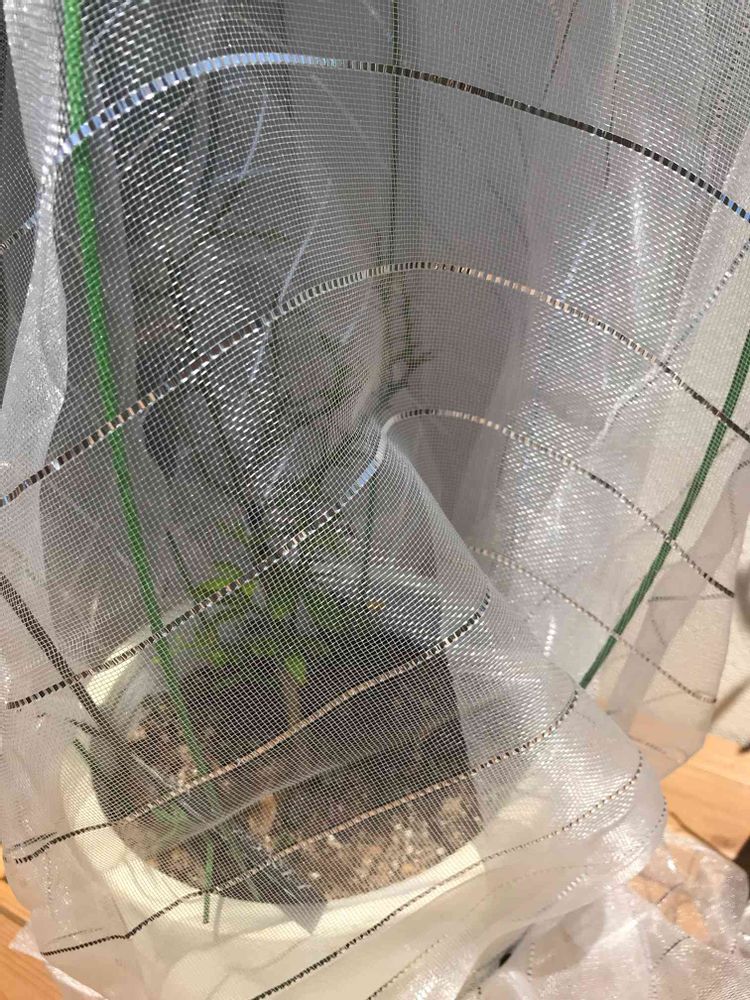 ようやく新芽が出てきたフィンガーライムに🐛が!2ミリくらいの8匹と卵を6つ発見!駆除!