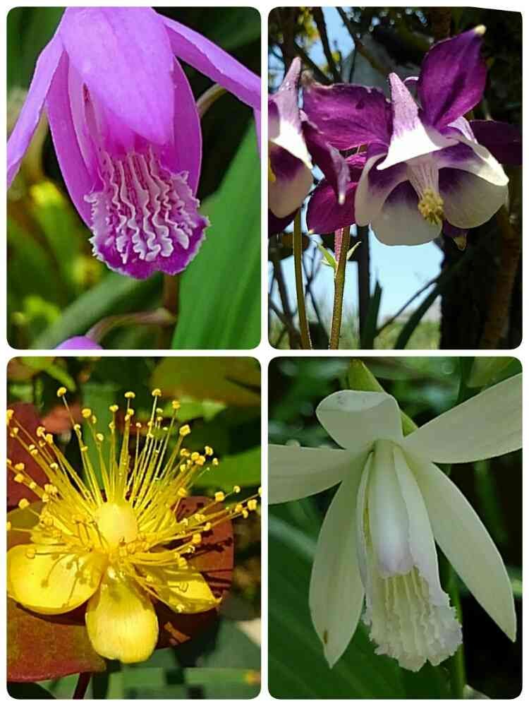 遅まきながら紫蘭もやっと花盛りかしら😅大好きな紫のオダマキも咲いた~😍花友達からお嫁に来たヒペリカムもやっと一輪咲きました🙌今年からお外組の仲間になります🍀💕