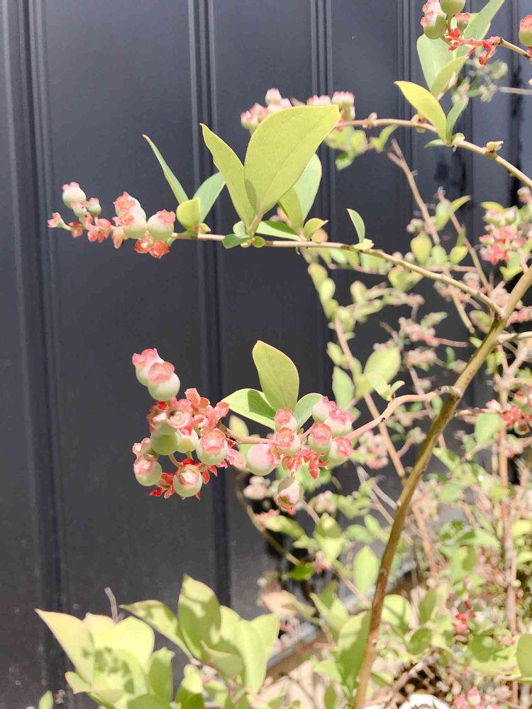 去年植えたブルーベリー。花が散った後、膨らんできた💕これは実がなってくれるのかな?😊