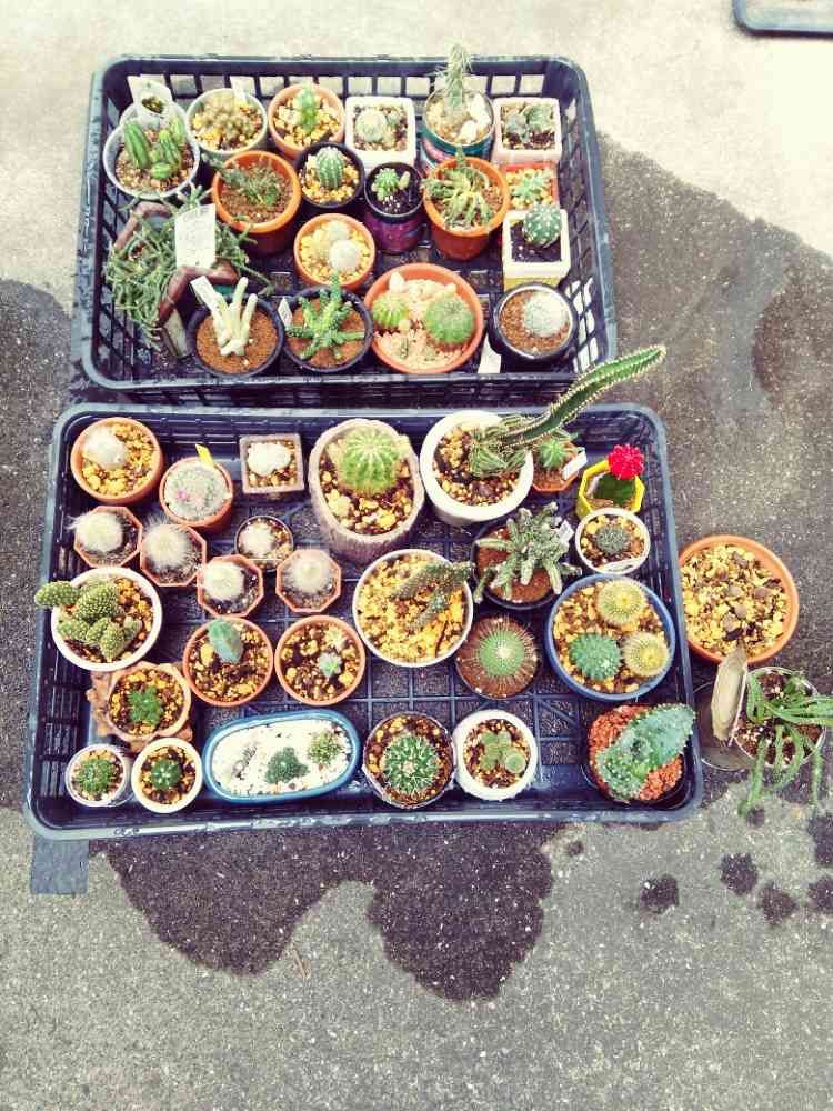 昨日はそれほど暑くなく風があったので家のサボテンを集めて水やりをしました。