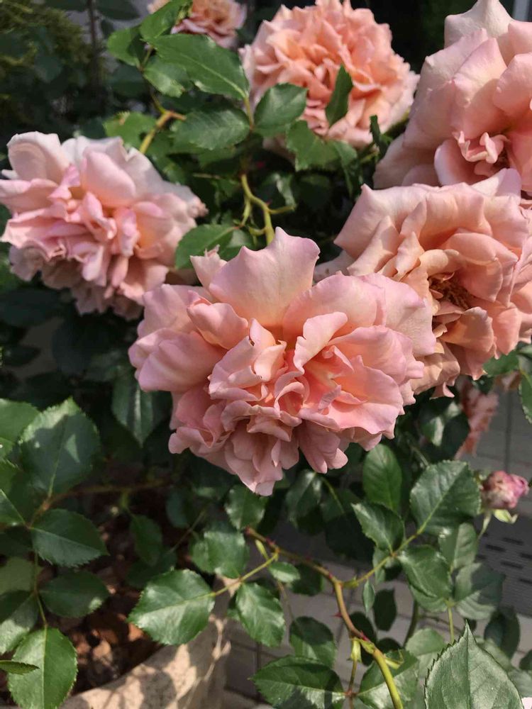 今年はアブラ虫も現れず、花芽を欠いたお陰で花径10㎝強のラテアートがたくさん咲きました!