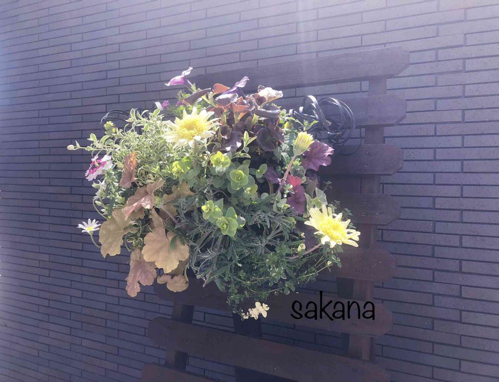 冬入りの際の特価品や庭から引っこ抜いてきたヒューケラ・コクリュウ・オレガノ・ハーブ類でボリュームを出しています。