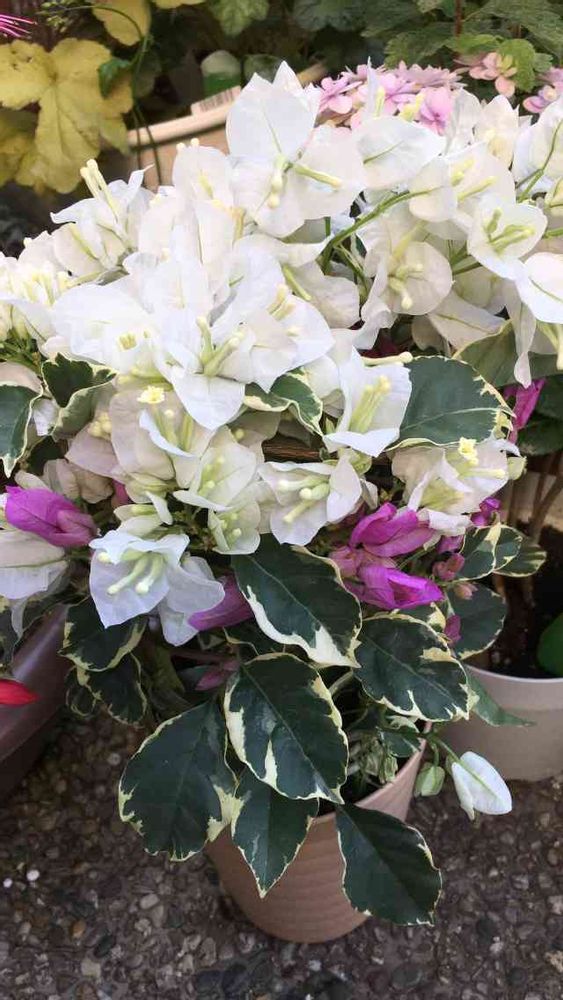 バラ園にて白い班入りのブーゲンビリアさんを買ってきました😃🎶