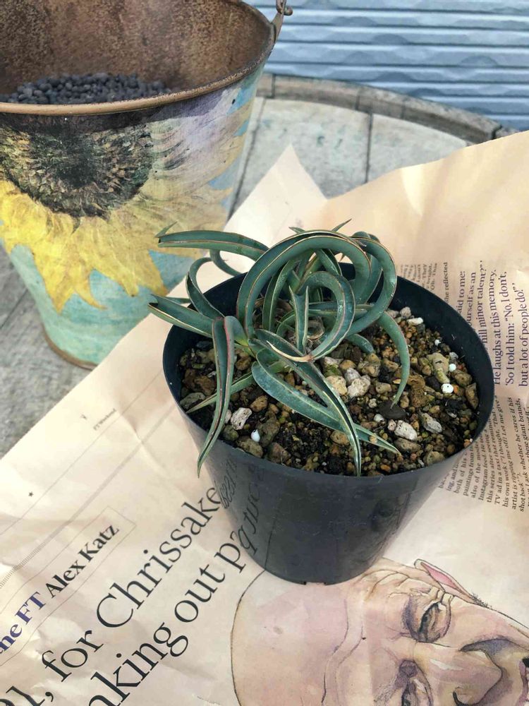 ザファームユニバーサルで1個だけ自分へのお土産として購入☺️おしゃれな包装紙で気分も⤴️⤴️ただでさえ成長が遅いらしいユッカバッカタ🌱3分頭の君達の幹上がりはいつになるのか⁈