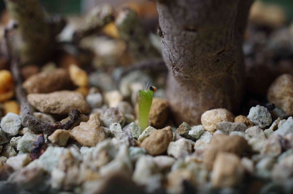 そう、頭に毛が三本。でも、スルッと土から抜けちゃったので、無理やり埋めてどうなるか観察中。