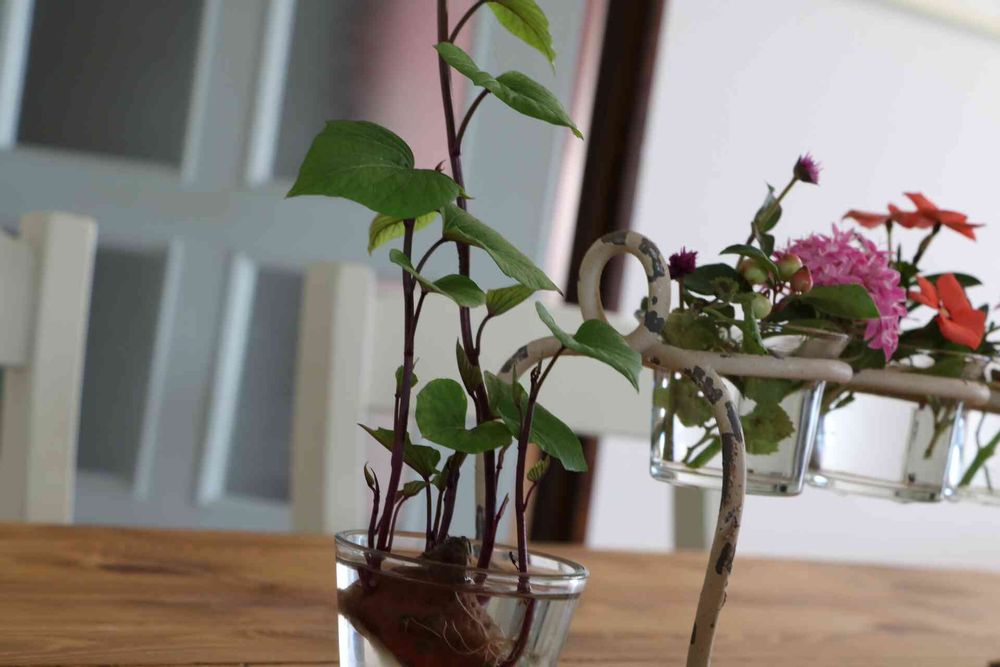 さつまいもの端っこをお水につけて栽培中。なかなか綺麗なグリーンです。