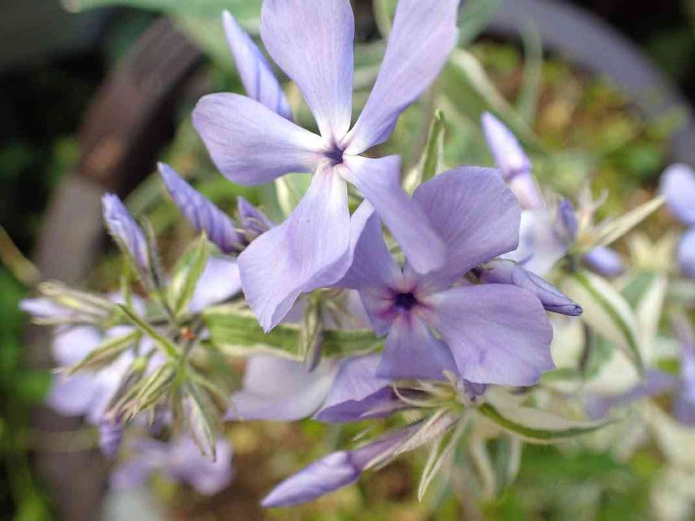 「モントローズトリカラー」だけです。これは、宿根フロックスのなかでも背の低い、ディバリガータの斑入りで、20cmくらいにしかならないので寄せ植えやグランドカバーに使いやすい品種です。かすかに香りもあり、柔らかな雰囲気の斑入り葉とブルーのお花がとても気に入ってます。