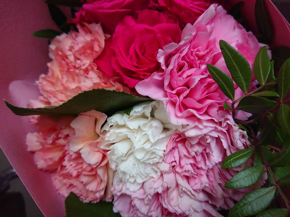 ぎゅうぎゅうに詰まった花束を息子からもらいました。母の日です。今日はあっちこっちでお母さんに感謝する日。