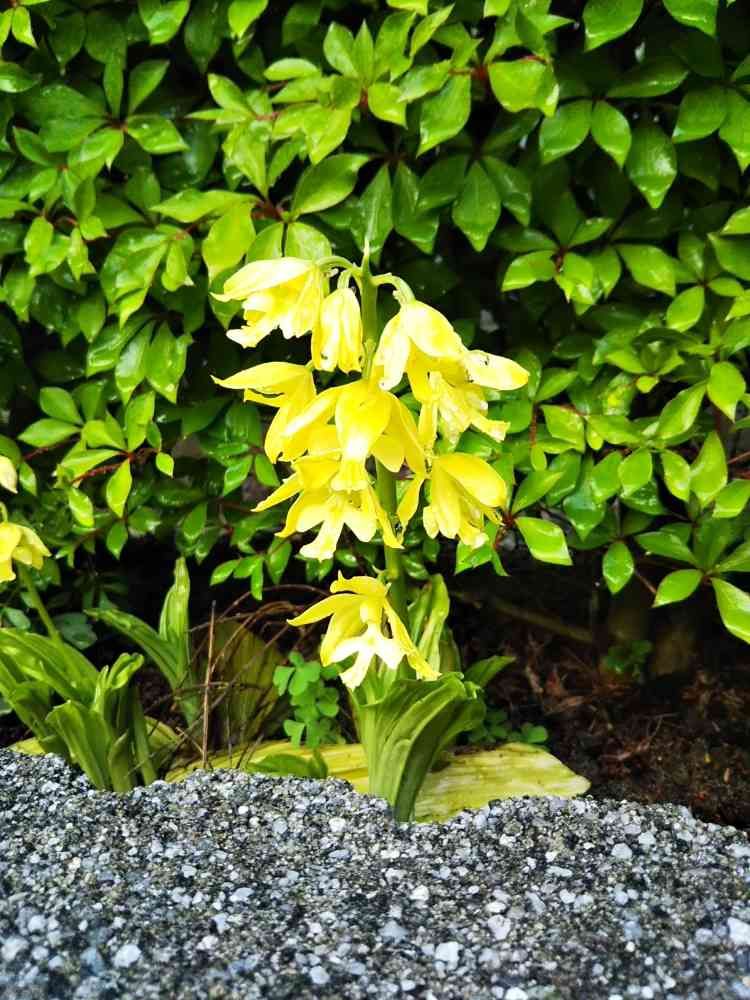 近所のご婦人からの頂き物、無事咲いてくれました。黄色の山野草エビネ(茶色はまだ)です。 朝日程度当たればいいよ👌、が少し西日が当たります。ドウタンツツジの花が終わる頃目立つね☺️