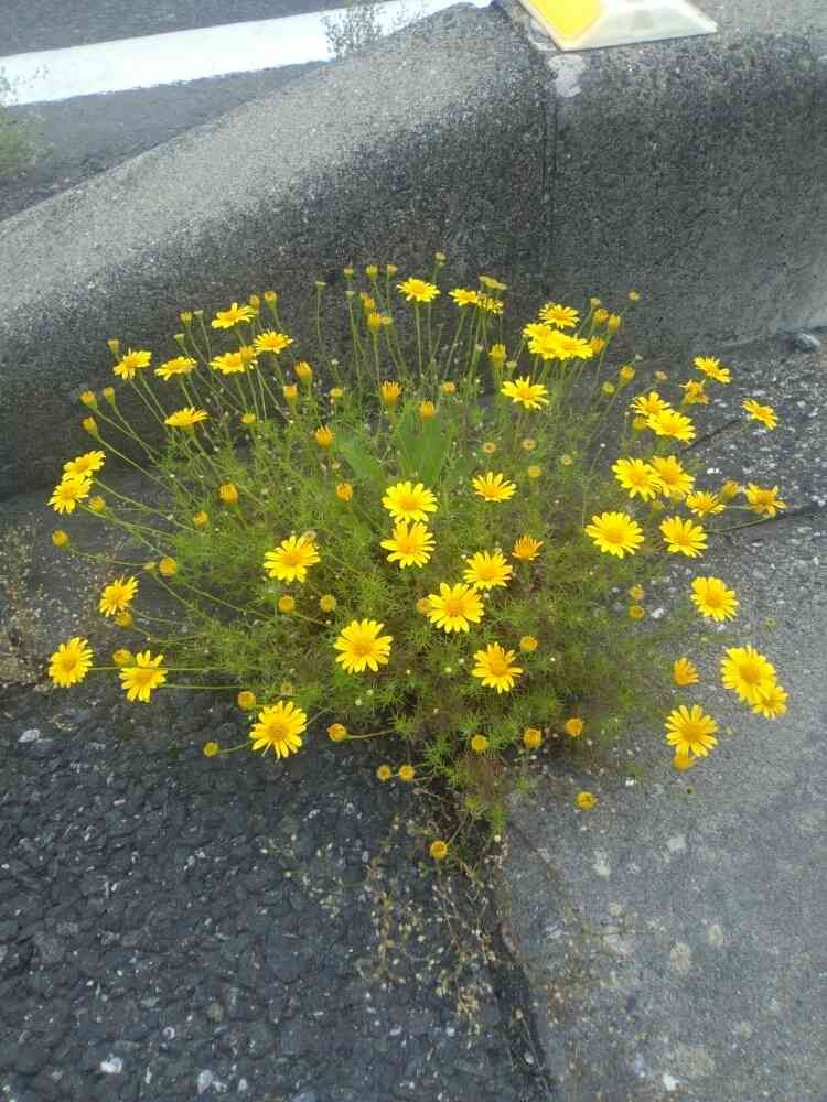 近場の交差点のアスファルトの隙間にたくさん咲いていました。