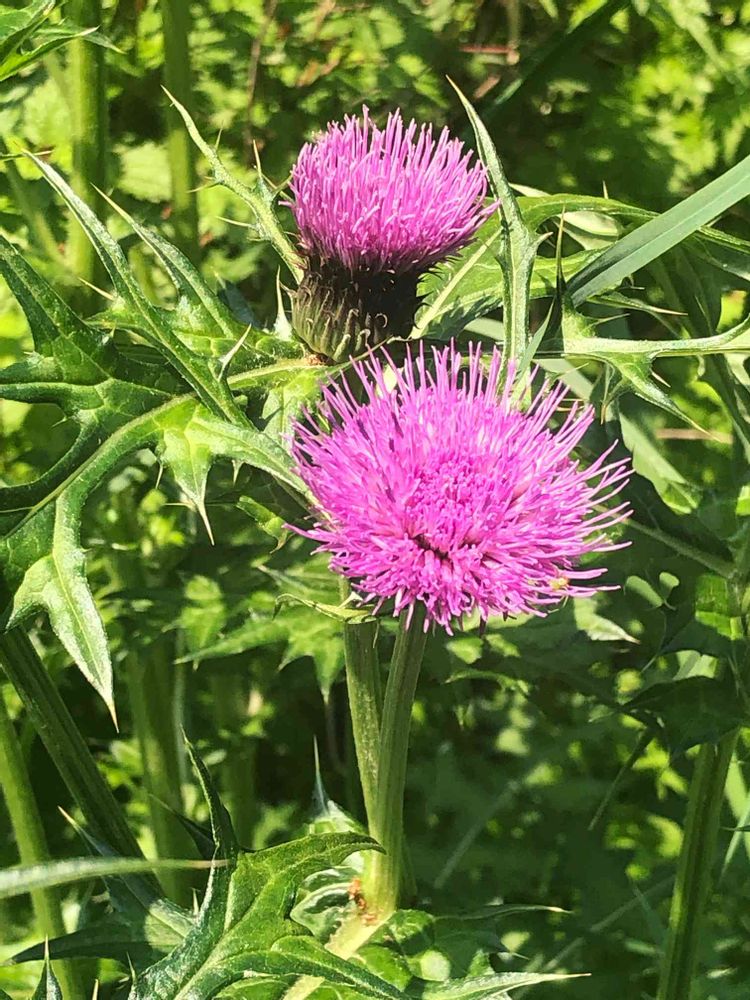 子どもの頃、きれいな色に惹かれてアザミを摘もうとして、トゲでチクっとしたのを思い出します。