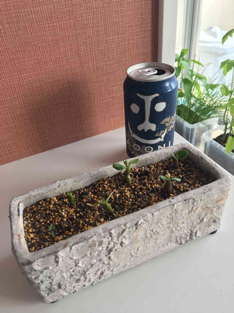コーヒーカップだと間違えて飲んでしまうので植え替えました、アデニウム遠部進くんたちです。