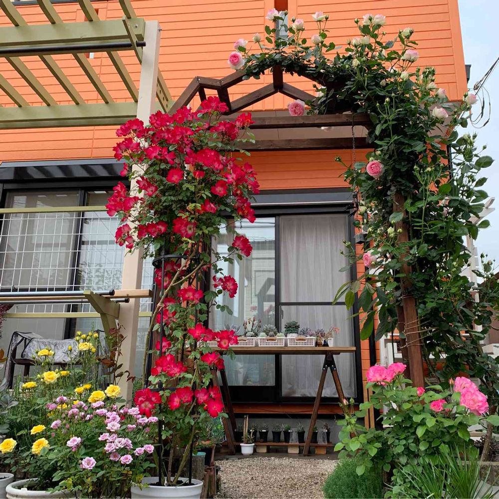 薔薇🌹アーチに咲き始めて美しいですね~guchaさん♡なんでも美しく育ててられますね~