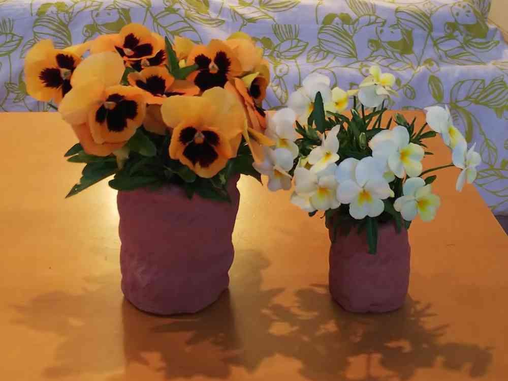 今日の暑さで、ビオラとパンジーがダラ~と垂れてしまったので、思いきって切って生けました💐😆💦