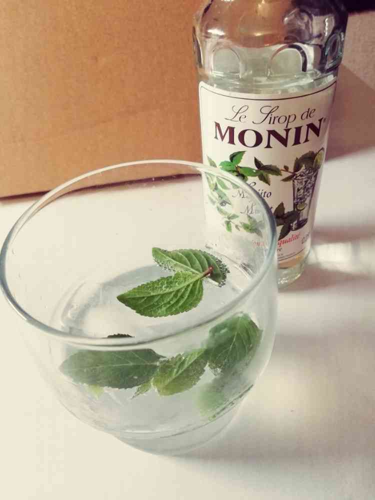 炭酸水+モヒートシロップ+レモン汁に伸びてきたミントを投入。ジンジャーミント、普通のミントより少し渋い香りがする!
