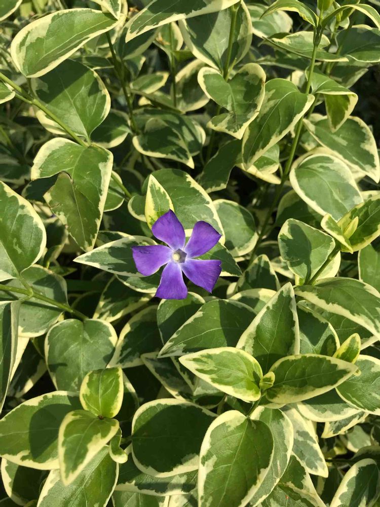 斑入りツルニチニチソウのお花を真ん中に、インパクト投稿ありがとうね🤗