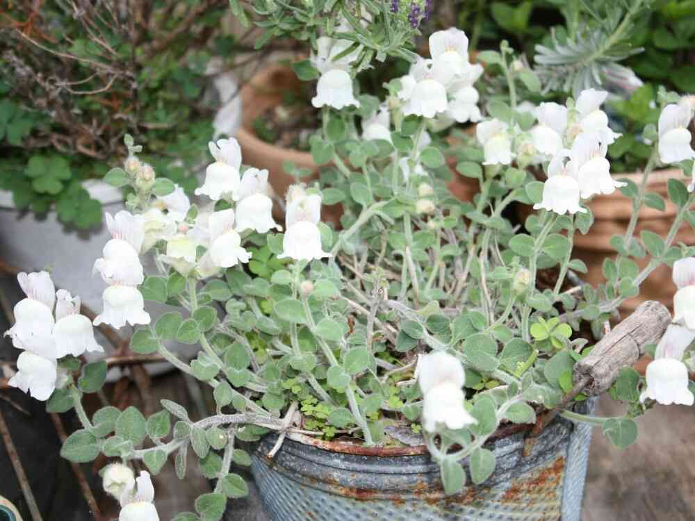 シルバーのカラーリーフとして購入した苗ですが、白いキンギョソウが咲きました😃