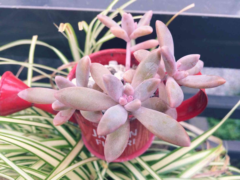 100均のピックの狭いところで葉挿しからの子達が仲良く色付き中