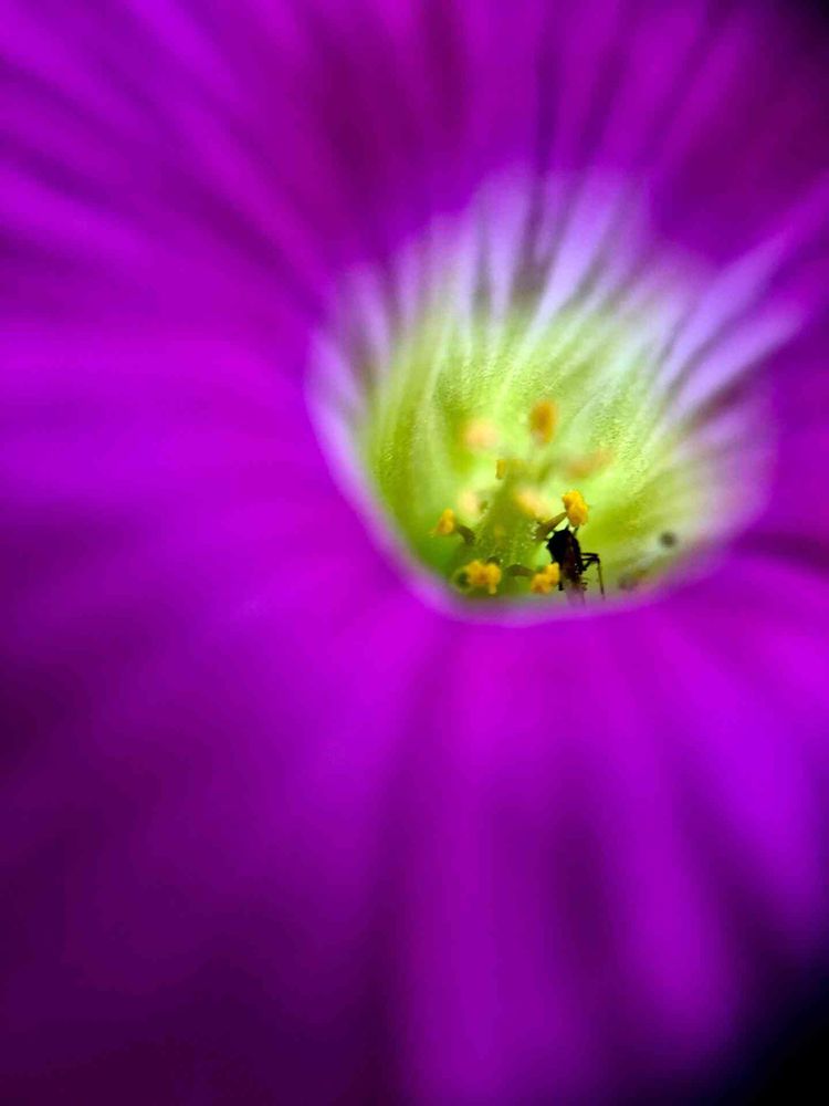 ハイ!去年の夏に撮ったアサガオから覗くアリさんです。