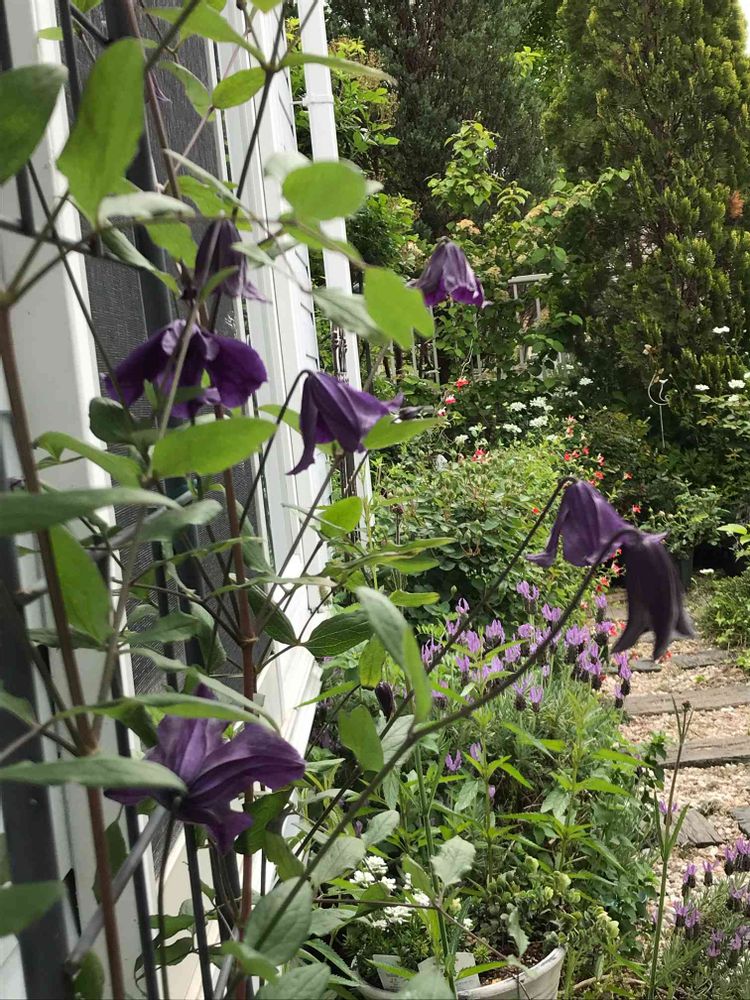今朝の庭🍃 クレマチス リトルボーイ💜