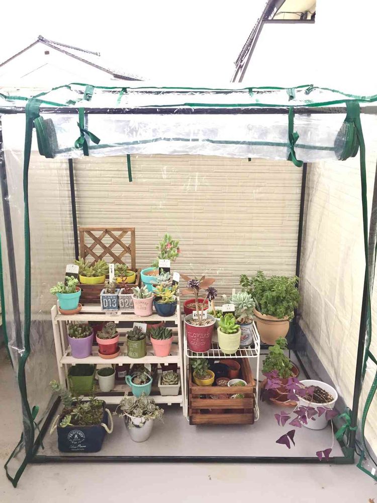 最近朝晩の冷え込みが増してきて、多肉をいつ室内管理にしようかと思っていたところ、ホームセンターで温室1980円を発見。