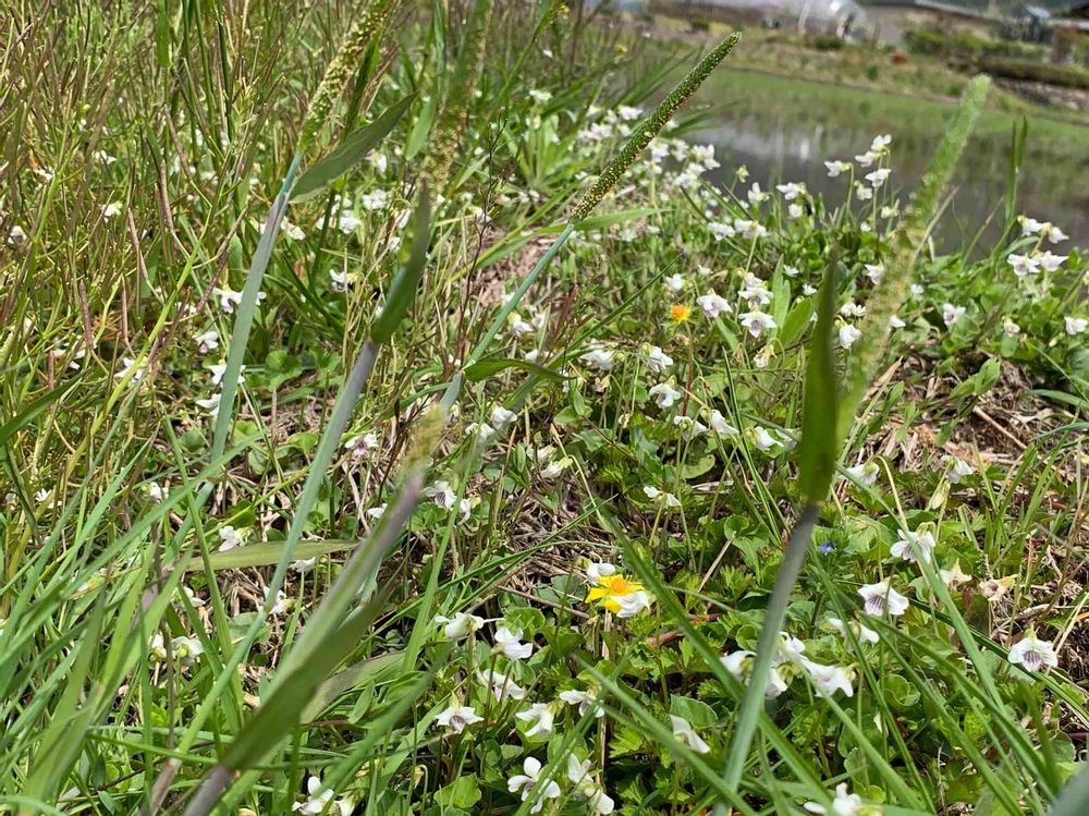 スズメノテッポウを鳴らすのには、穂が半分ほど出てるくらいがちょうど良かった気がする🤔(手前に4本並んでるのがスズメノテッポウです)