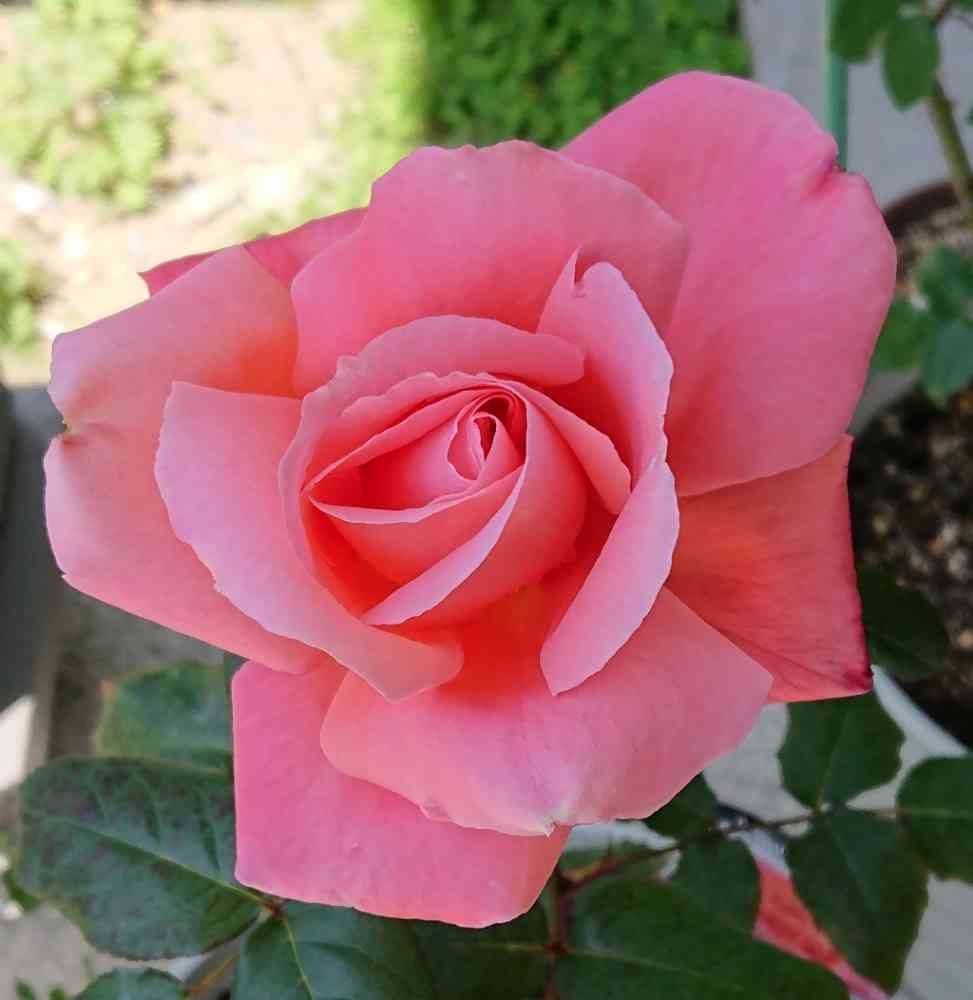 オレンジ色のカトリーヌ・ドヌーブ 咲いてみたらピンク寄りでした😅 大輪です。