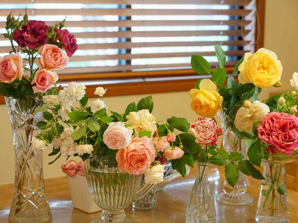 わんこお散歩でお会いするご近所の奥さまがベテランロザリアンでいらして、私が薔薇栽培を始めたことを伝えると、お庭に咲いている薔薇を惜しげもなく切ってくださいました🥰感謝感激💕