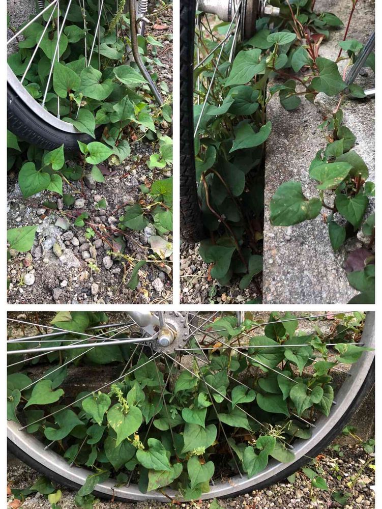 ドクダミに侵食されそうなチャリ
