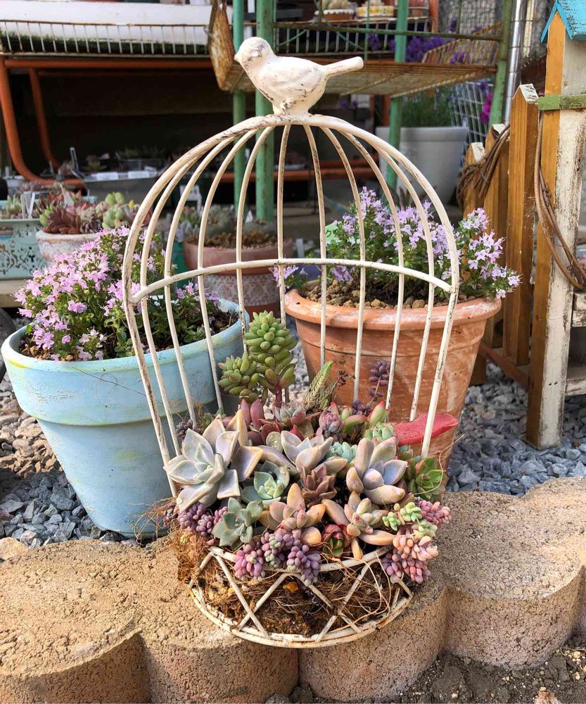 とってもかわいい鳥かごの寄せ植えですね🥰GSまだまだ初心者ですがよろしくお願いいたします(*^▽^*)