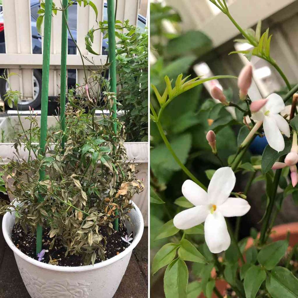 3週間前には枯れかけて元気のなかったハゴロモジャスミン。