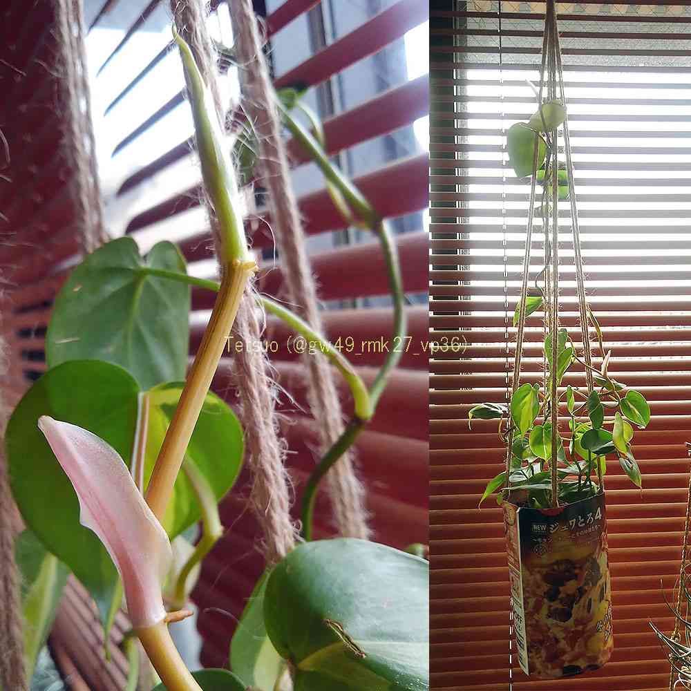 プラントハンガーを変更。オキシカルジウムは茎から付着根なるものを出してよじ登っていくようだ。この巻き方向も遺伝的に決まっているらしい、ちなみに無理やり巻いてる(∩ˊ꒳ˋ∩)・*