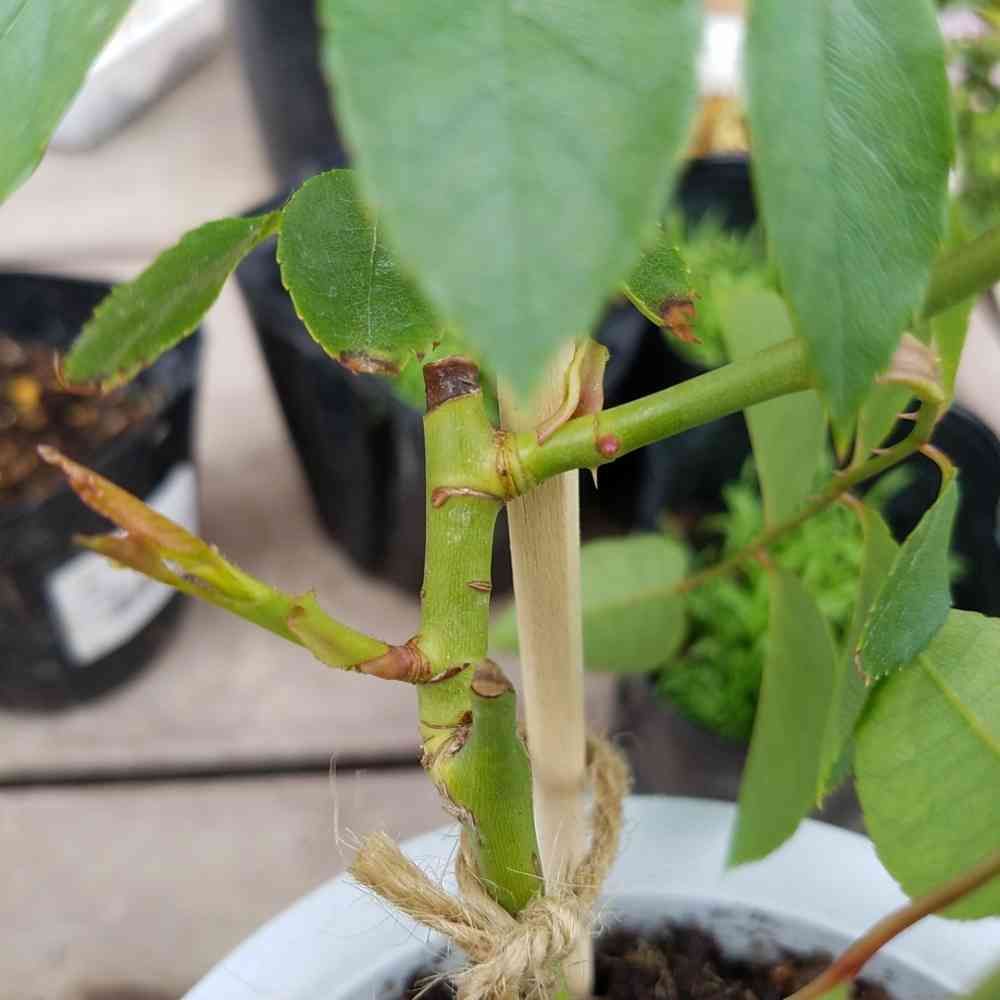それなんですが、私の挿し方が悪くて、挿し木が斜めに生えてしまったので、しばらく真っ直ぐになるように添え木してみました(^ー^)