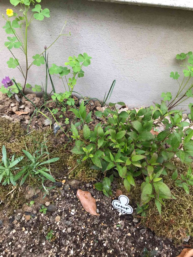 壁側に可愛い葉で黄色い花が咲いているのが数本ありますが タチカタバミという草です。