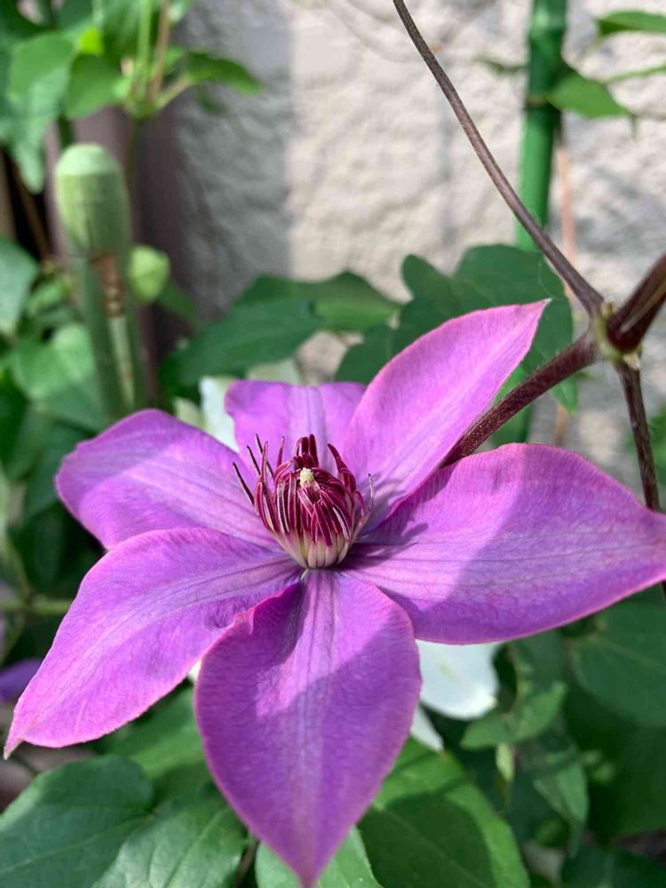 去年 見切り品コーナーからお迎えして、何色かなぁ🎶って 待っていた クレマチスです✨ 素敵な紫色😍