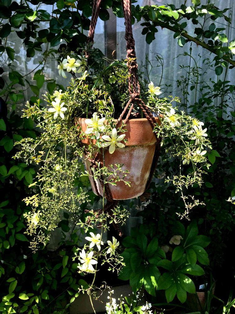 今年は花が少なかったですが、枝垂れを生かしたくてマクラメハンギングなるものを作ってみました(*´꒳`*)うまくできたぞ♬