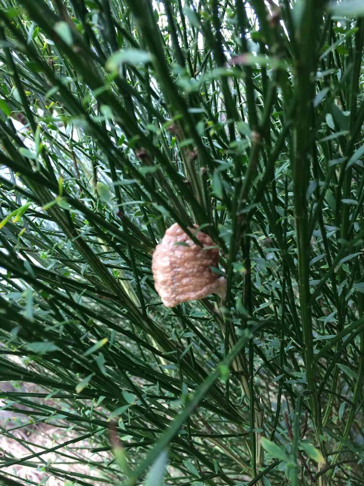 エニシダに付けられたオオカマキリの卵〜